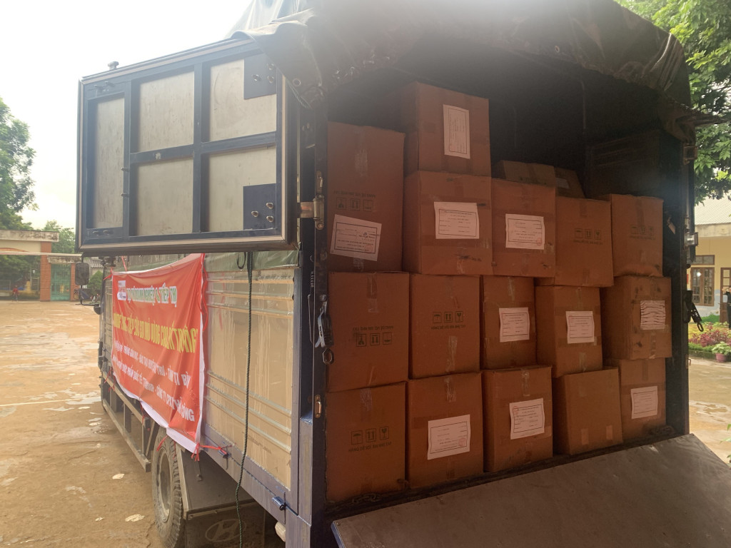 Ảnh: Chuyến xe thiện nguyện chở rất nhiều quần áo, sách vở, nhu yếu phẩm của các mạnh thường quân gửi đến các em nhỏ vùng cao